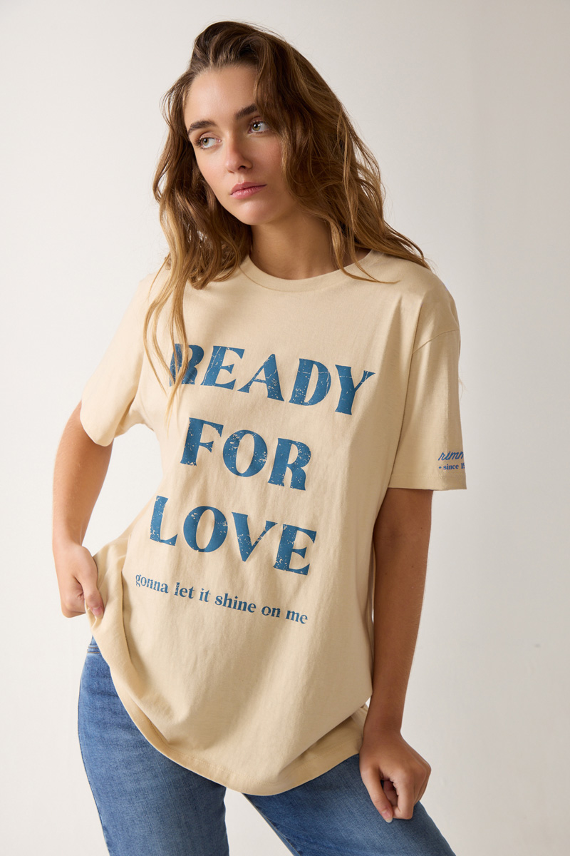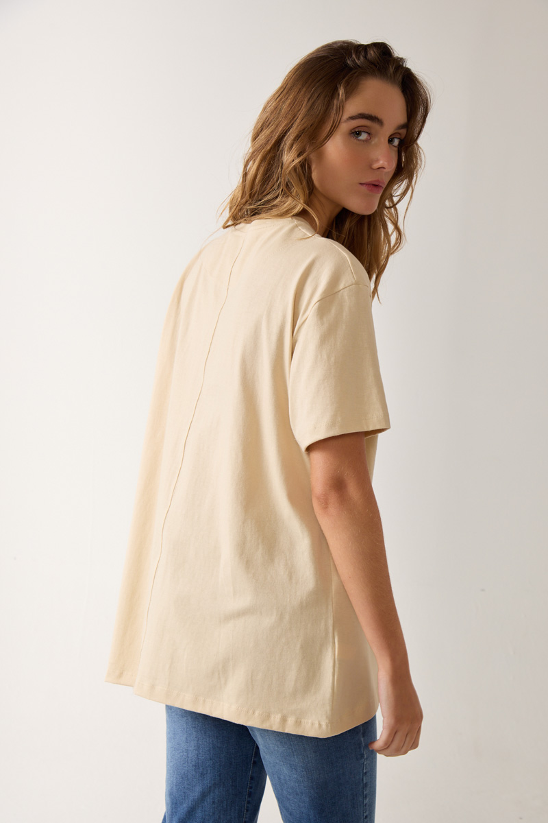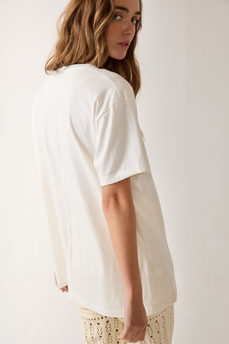 estampado con cuello redondo y detalle de estampa en manga. Textil: Jersey. Composición: 100% Algodón. |