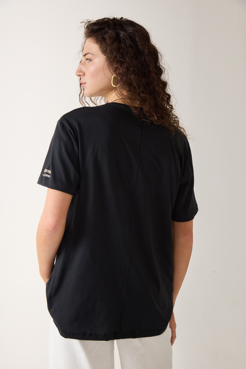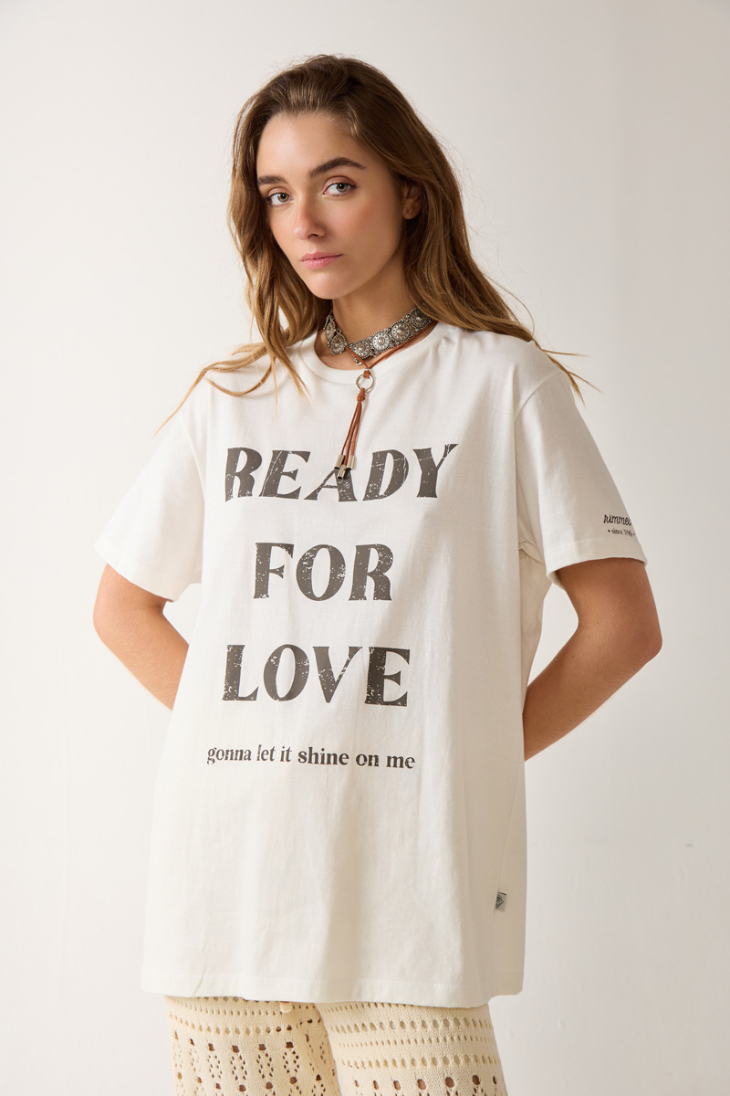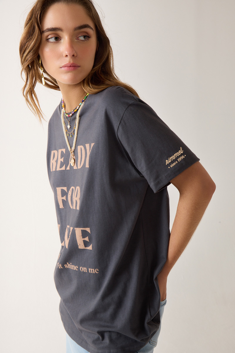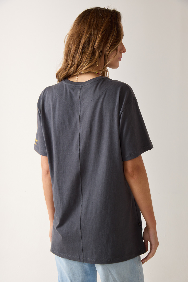 estampado con cuello redondo y detalle de estampa en manga. Textil: Jersey. Composición: 100% Algodón. |