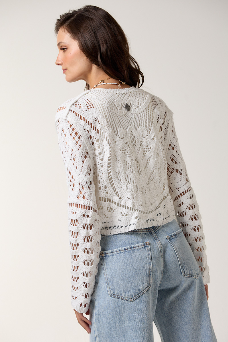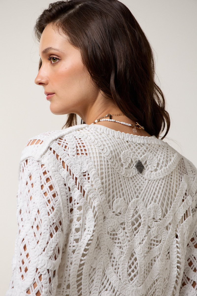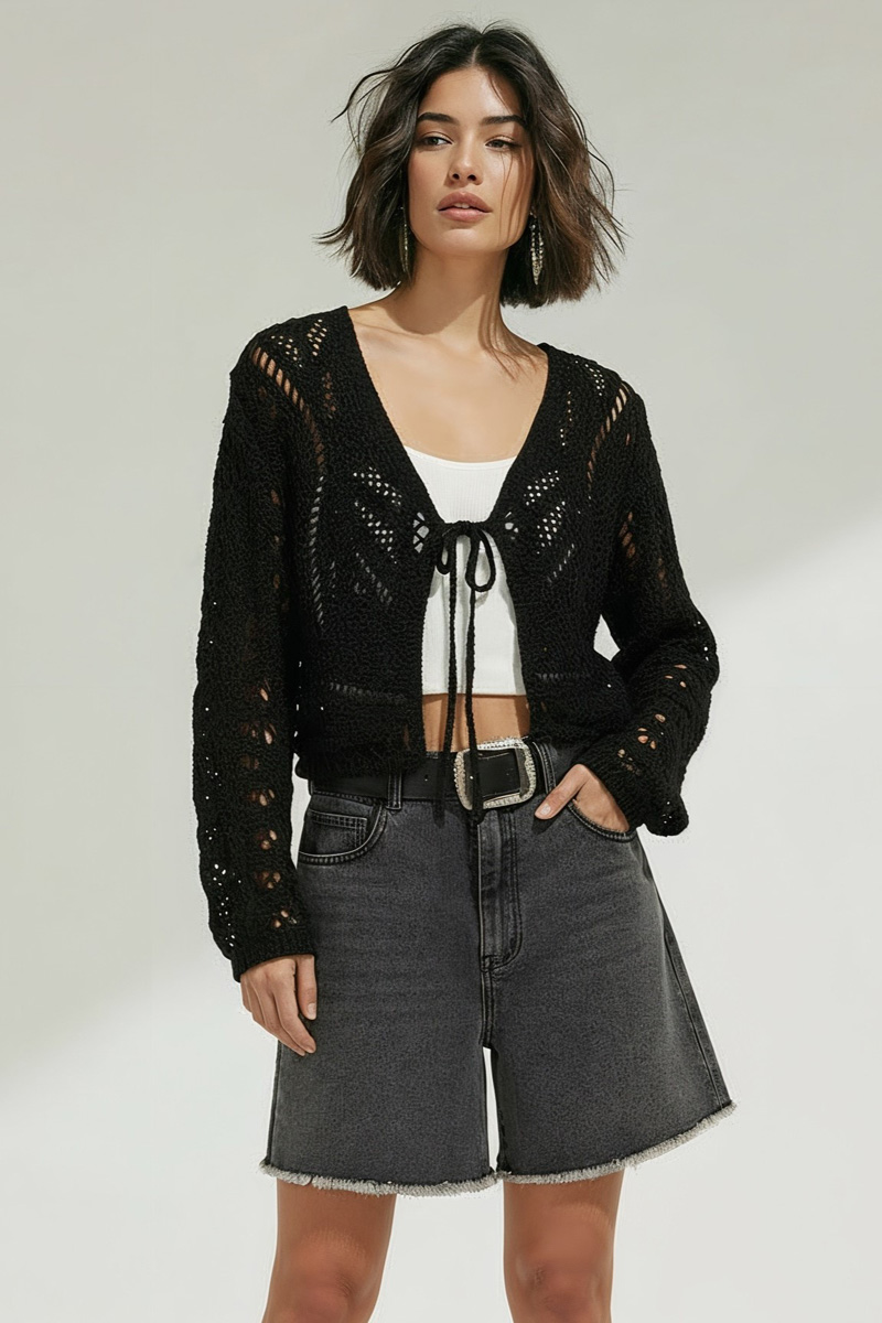 Cardigan tejido con lazos ajustables en el frente, un diseño delicado y femenino que aporta un aire romántico a tus looks. Su calce versátil permite usarlo cerrado o abierto, adaptándose a distintas ocasiones. Una prenda ligera y práctica que suma textura y estilo a tu guardarropa.